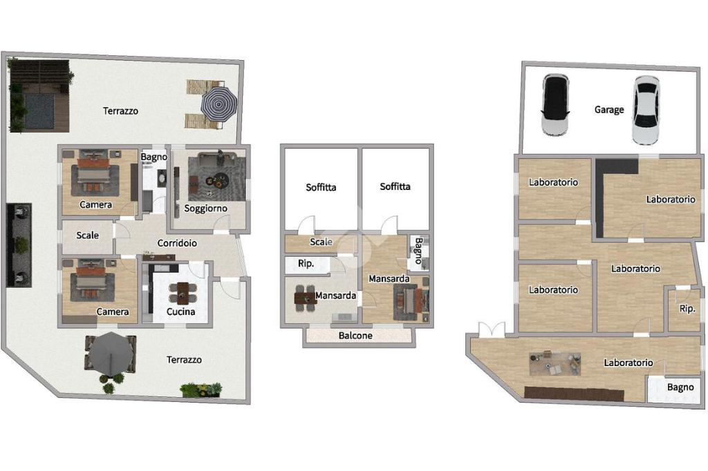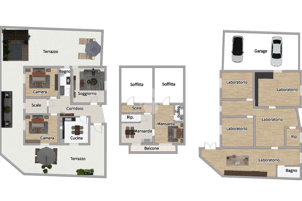 A completare questa proposta, al piano seminterrato, si trova un ampio laboratorio cn box auto. Dotato di diverse stanze, questo spazio versatile può essere trasformato in una taverna con box auto, rispondendo alle esigenze più diverse dei futuri proprietari.