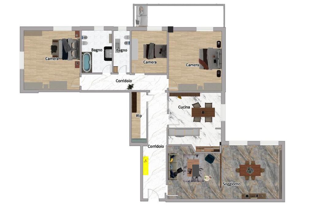 Il comfort continua nei due bagni: uno più grande, finestrato e dotato di una vasca e uno più piccolo ma pratico, con i servizi principali. Infine, un ripostiglio, indispensabile per l'organizzazione della casa.