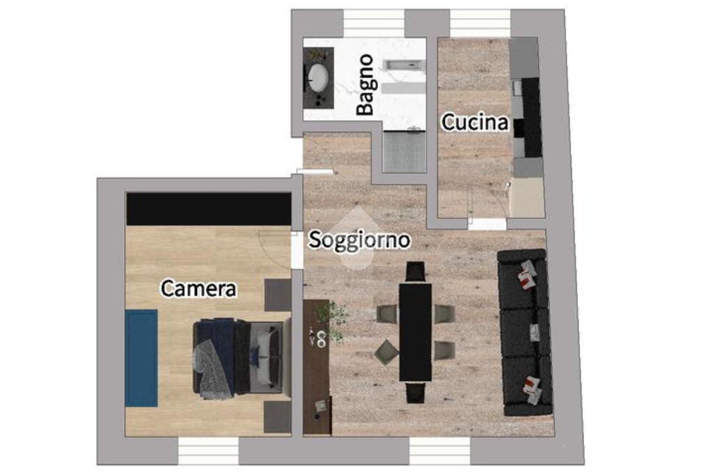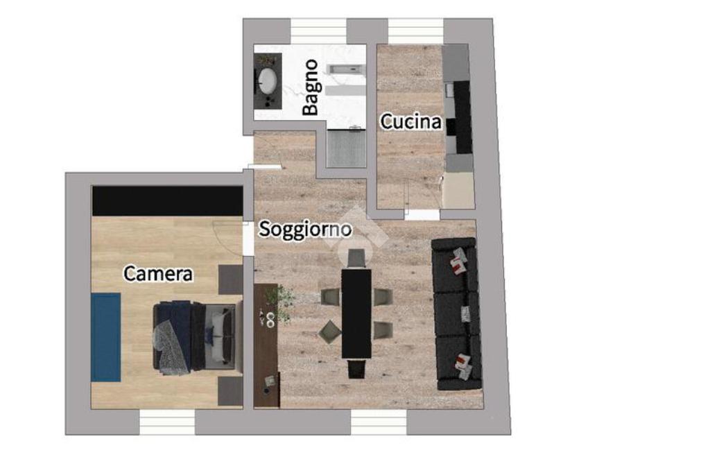 Dall'ingresso ci si imbatte subito in una spaziosa zona soggiorno pranzo. La cucina non abitabile, è separata e funzionale. Completa la proprietà una confortevole camera matrimoniale, perfetta per il riposo e il relax.