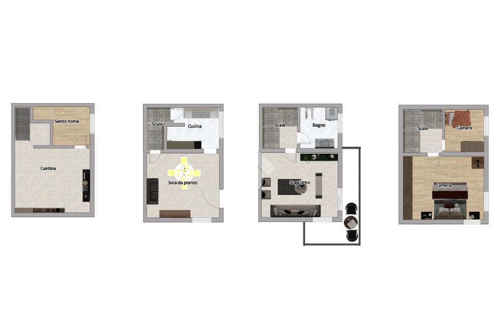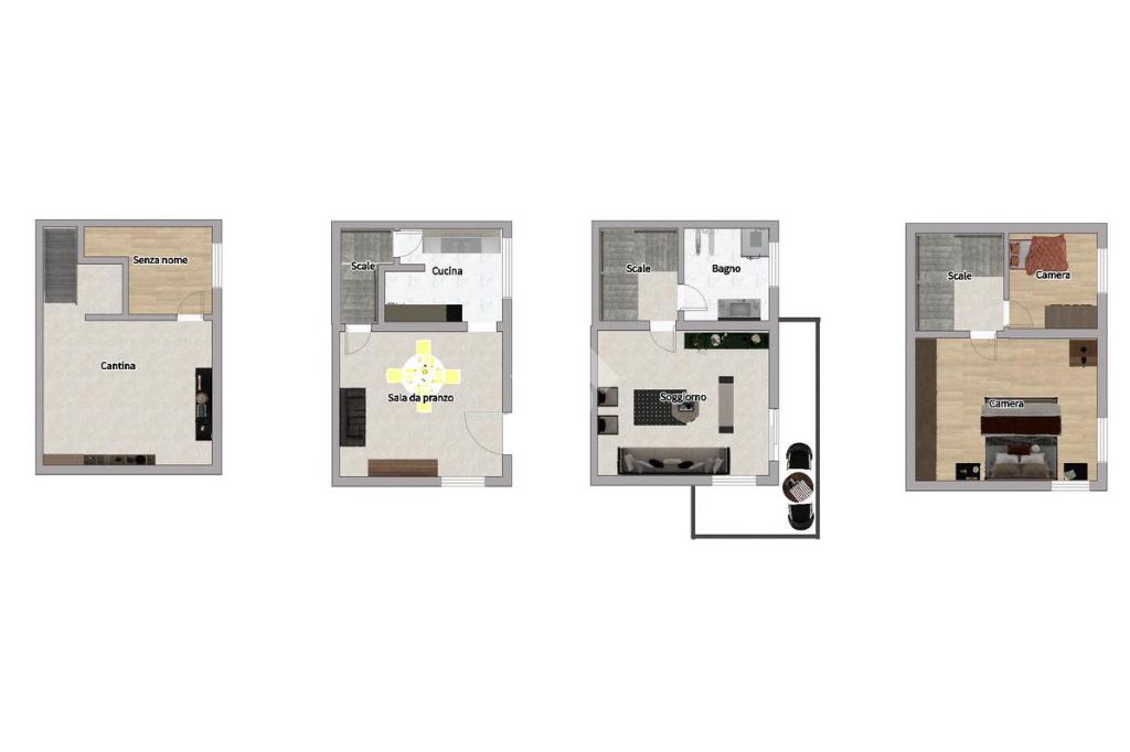 Al piano terra, l'ingresso si apre su una luminosa zona soggiorno pranzo, con una retrocucina funzionale che conduce alla cantina nel piano seminterrato, dotata di un pratico bagno.