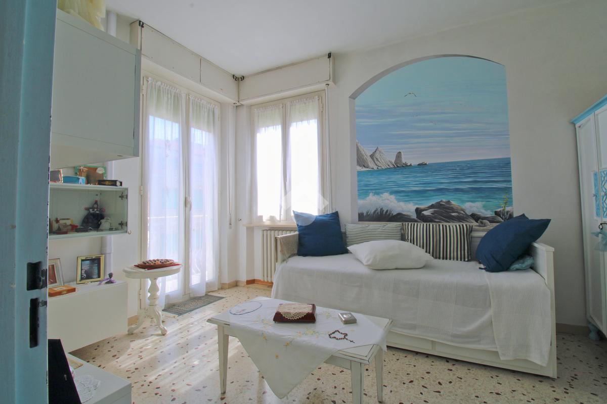 Salendo al primo piano, troverete un bagno finestrato con doccia. Una stanza accogliente, attualmente adibita a soggiorno, può essere facilmente trasformata in una camera da letto che offre accesso ad un balcone dal quale si può godere di una meravigliosa vista sul mare e su Corso Matteotti.