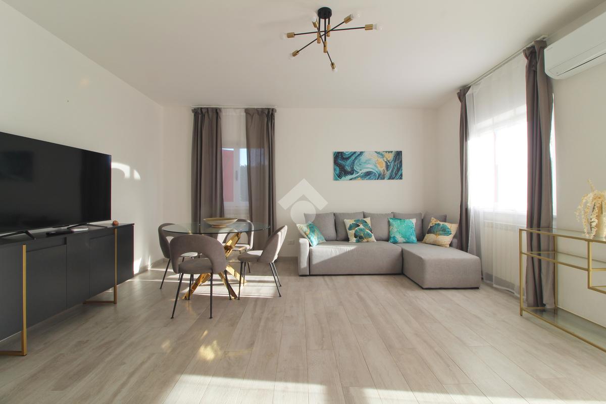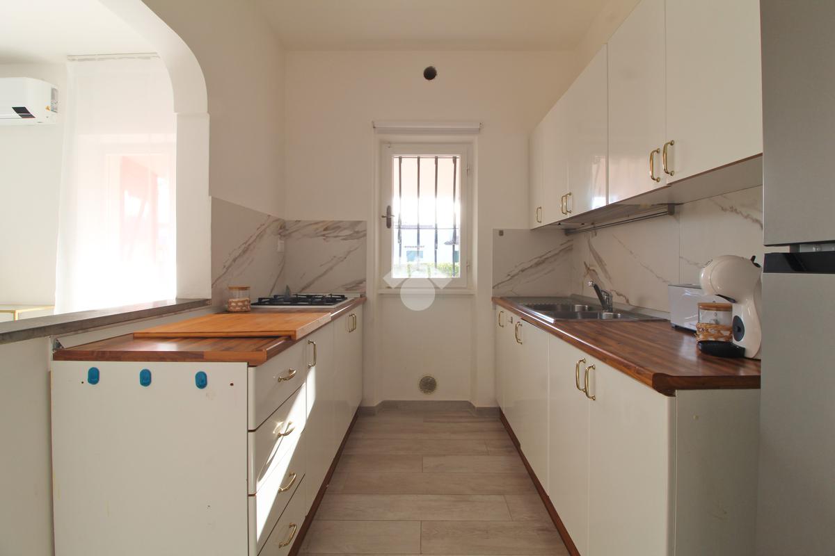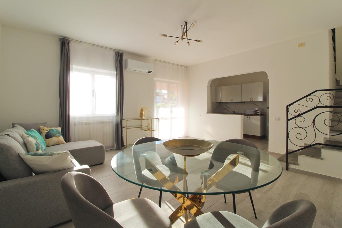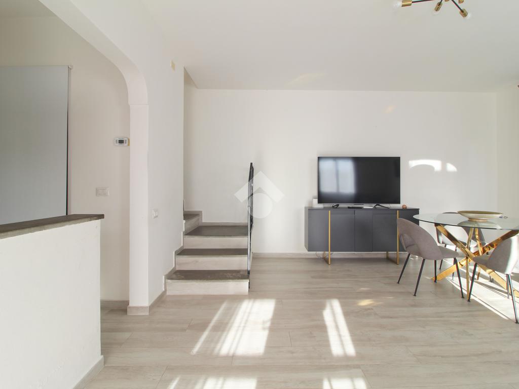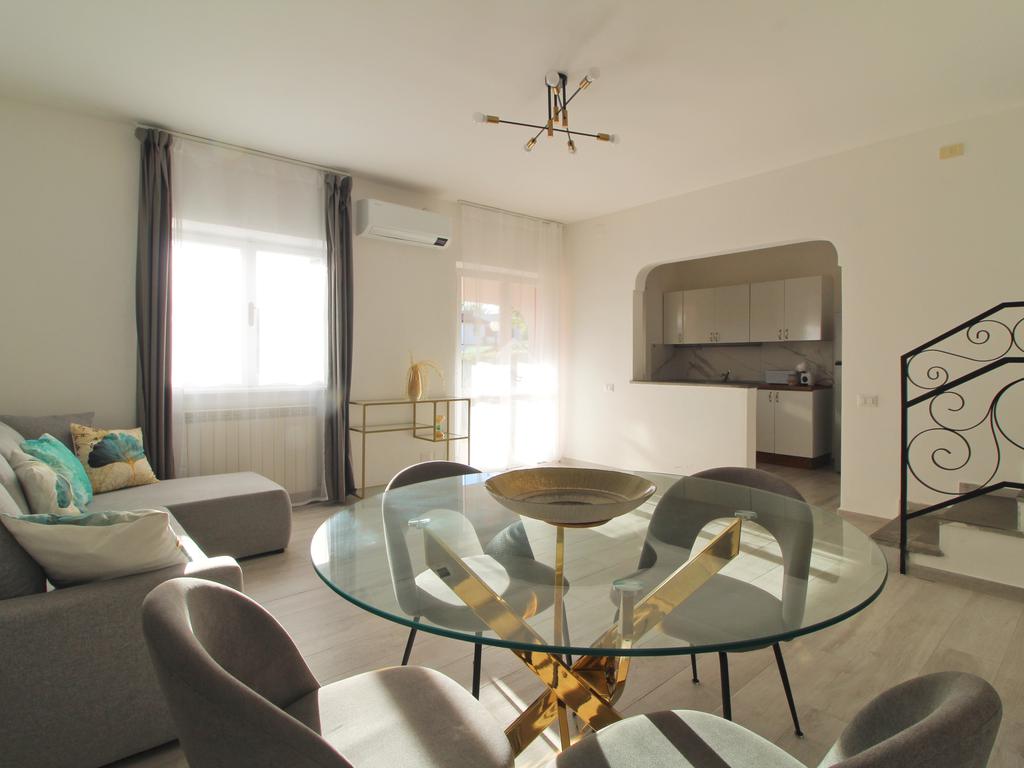 Al piano terra, la villa offre una luminosa zona soggiorno-pranzo, caratterizzata da un design aperto che si estende verso una pratica retrocucina con ripostiglio e lavanderia.