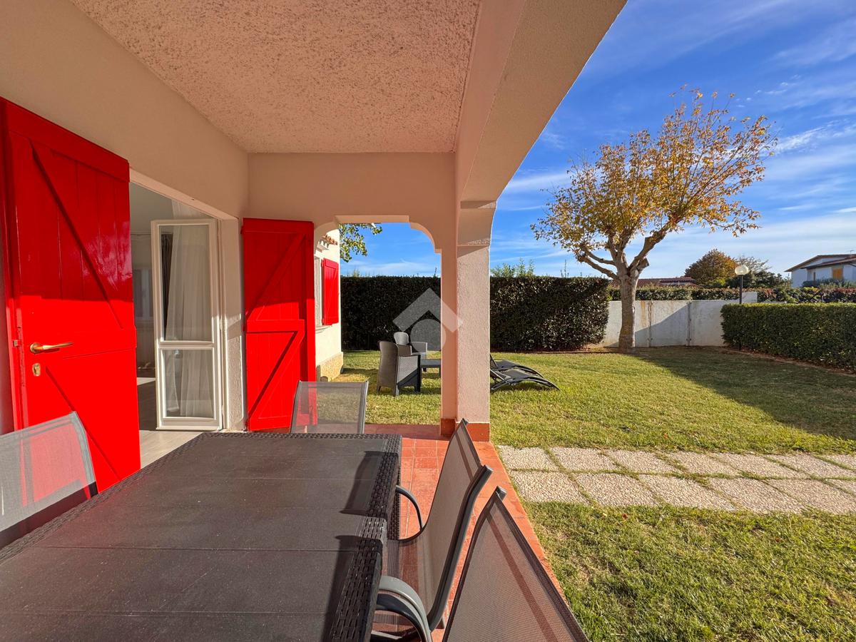 L'ingresso indipendente vi accoglie su un vialetto ornato da un ampio giardino, perfetto per chi desidera uno spazio verde. Il portico spazioso è ideale per godersi cene all'aperto in compagnia di amici e famiglia.