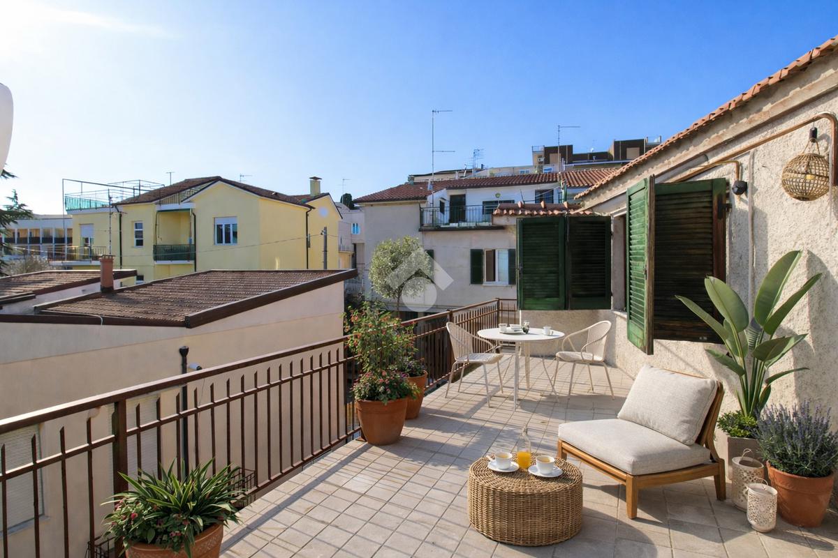Recanati, in zona semicentrale e tranquilla, mansarda situata al terzo piano di un piccolo condominio senza ascensore, caratterizzato da un ambiente sereno e riservato.