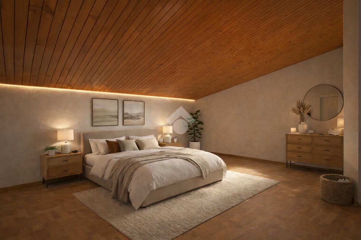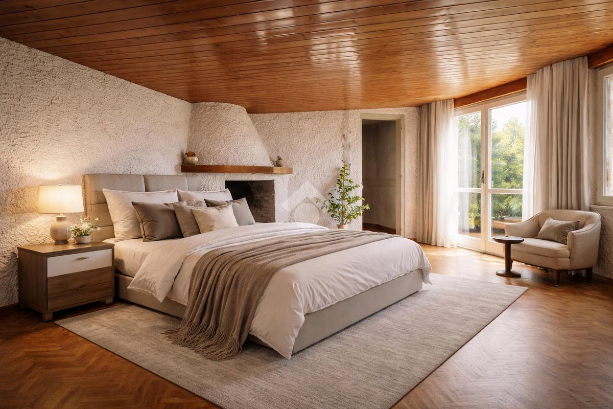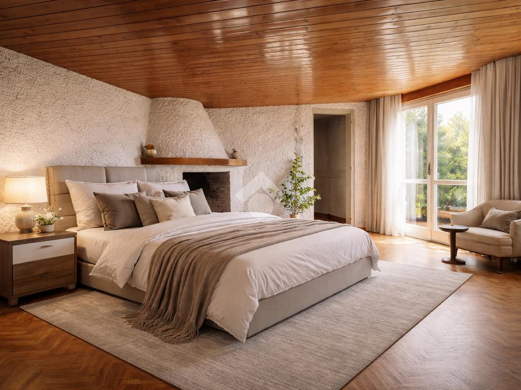 La zona notte è composta da un camera da letto matrimoniale con camino che offre un atmosfera calda e invitante, accesso al terrazzo, bagno finestrato con vasca e cabina armadio Completa la proposta un box auto.