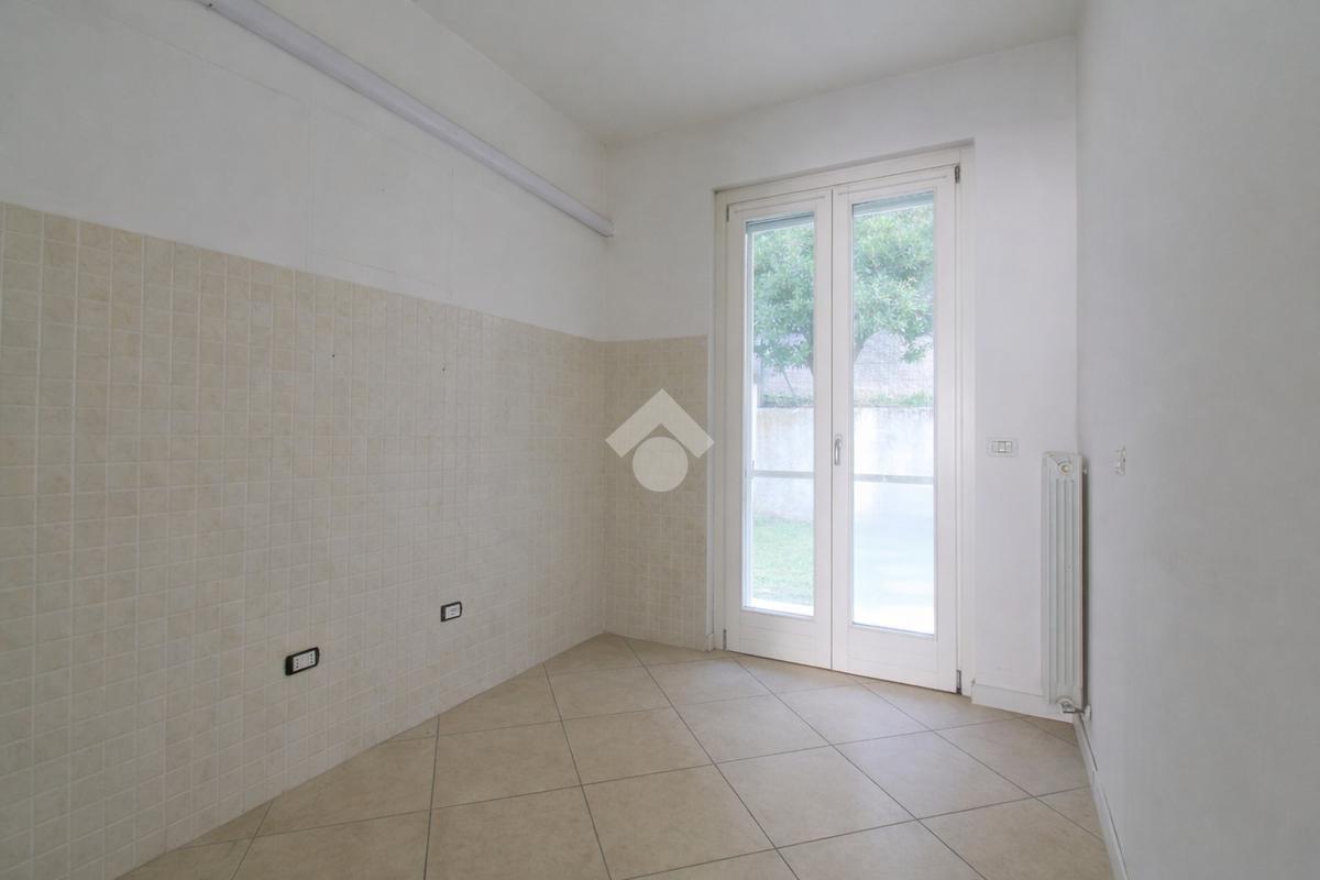 La cucina è separata e abitabile, con accesso diretto al giardino sul retro, perfetto per godere di maggiore privacy e tranquillità.