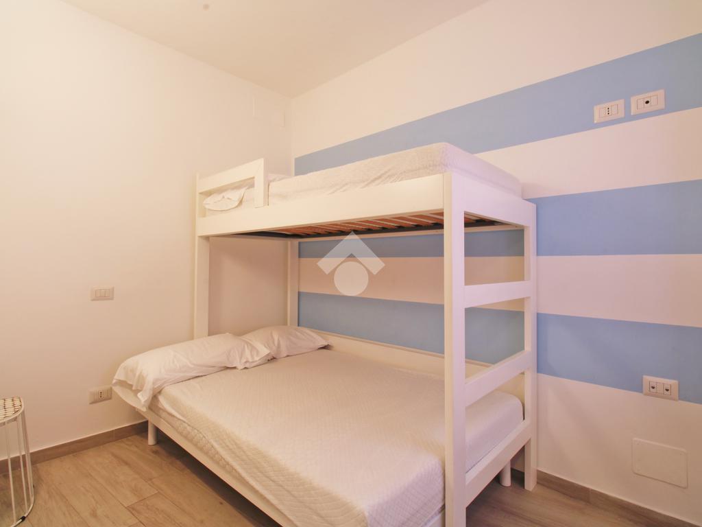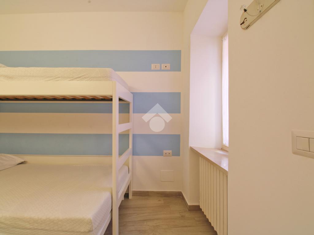 L'ingresso si apre su un'accogliente zona giorno open space, perfetta per trascorrere momenti di relax in compagnia. Un piccolo ripostiglio aggiunge praticità a questo spazio ben organizzato. Al primo piano, un bagno moderno con doccia e una camera dotata di letto a castello.